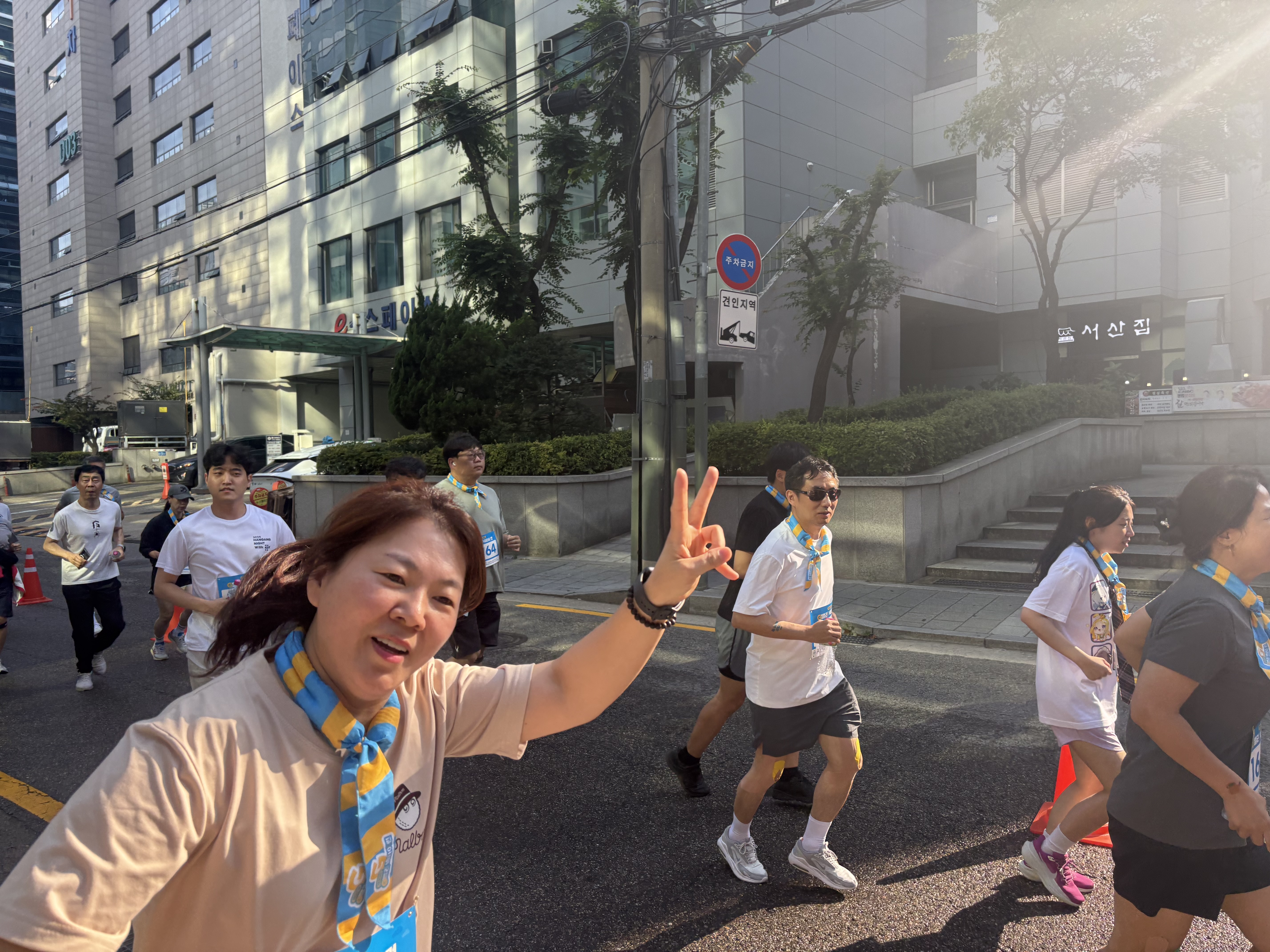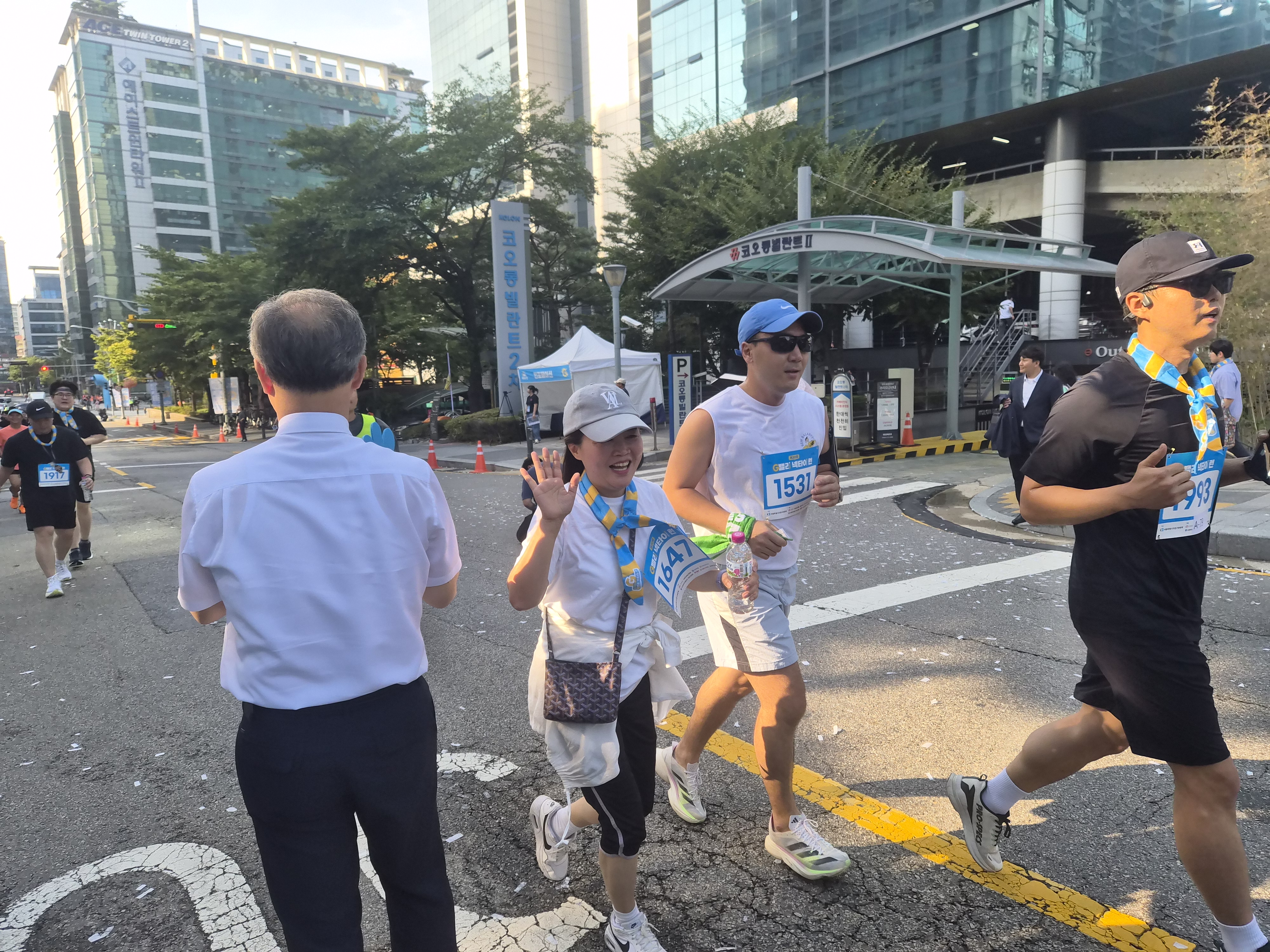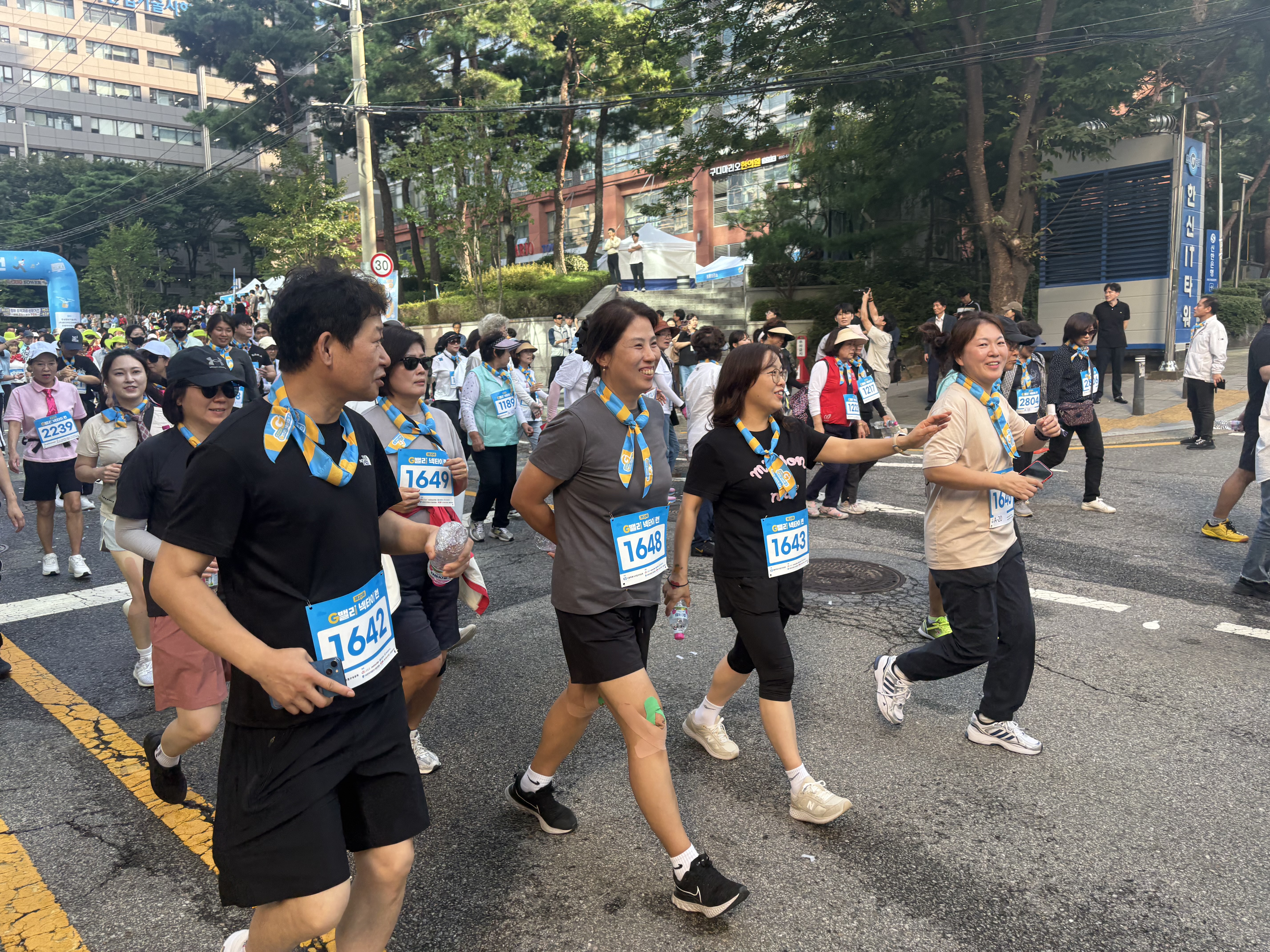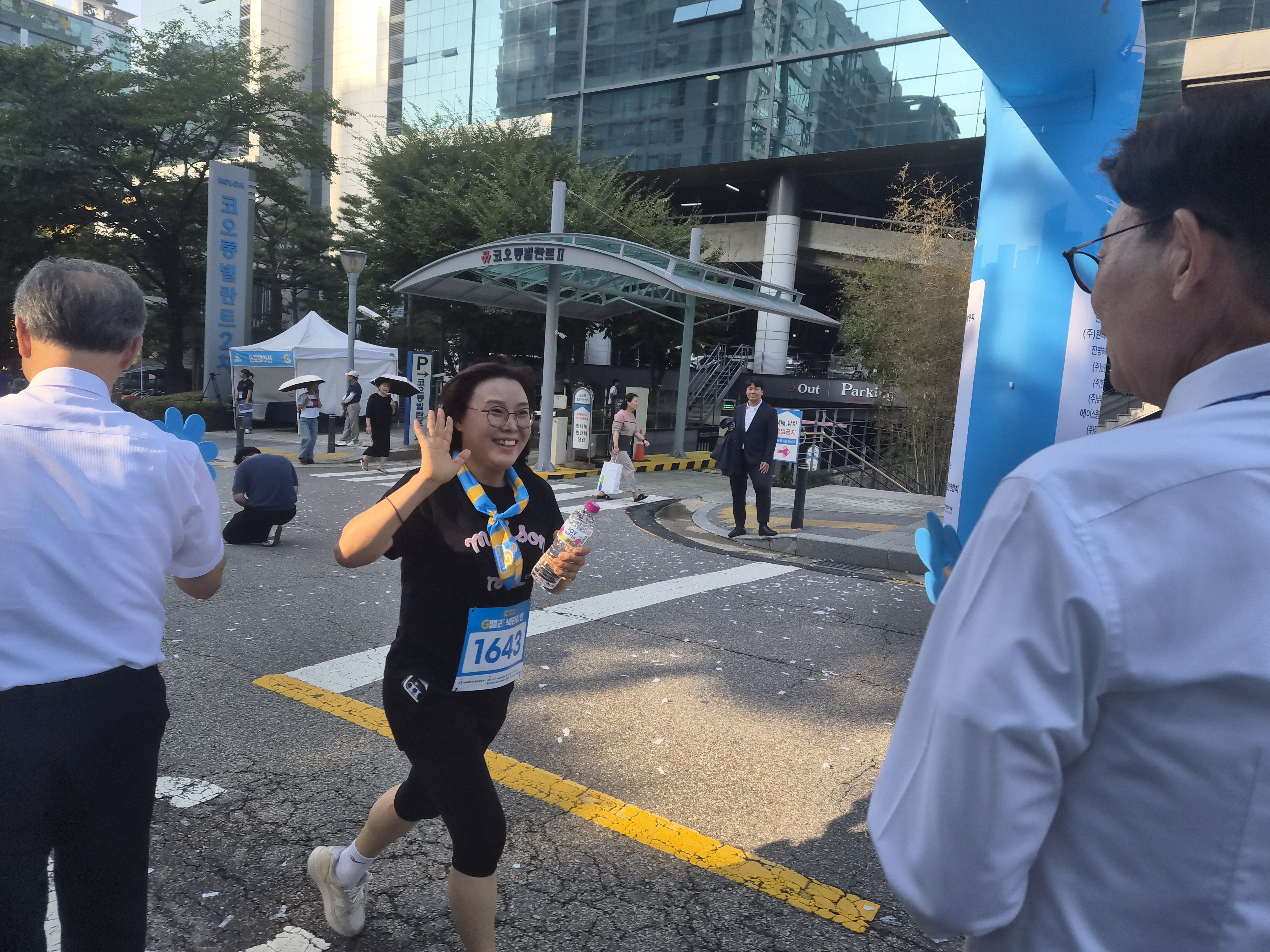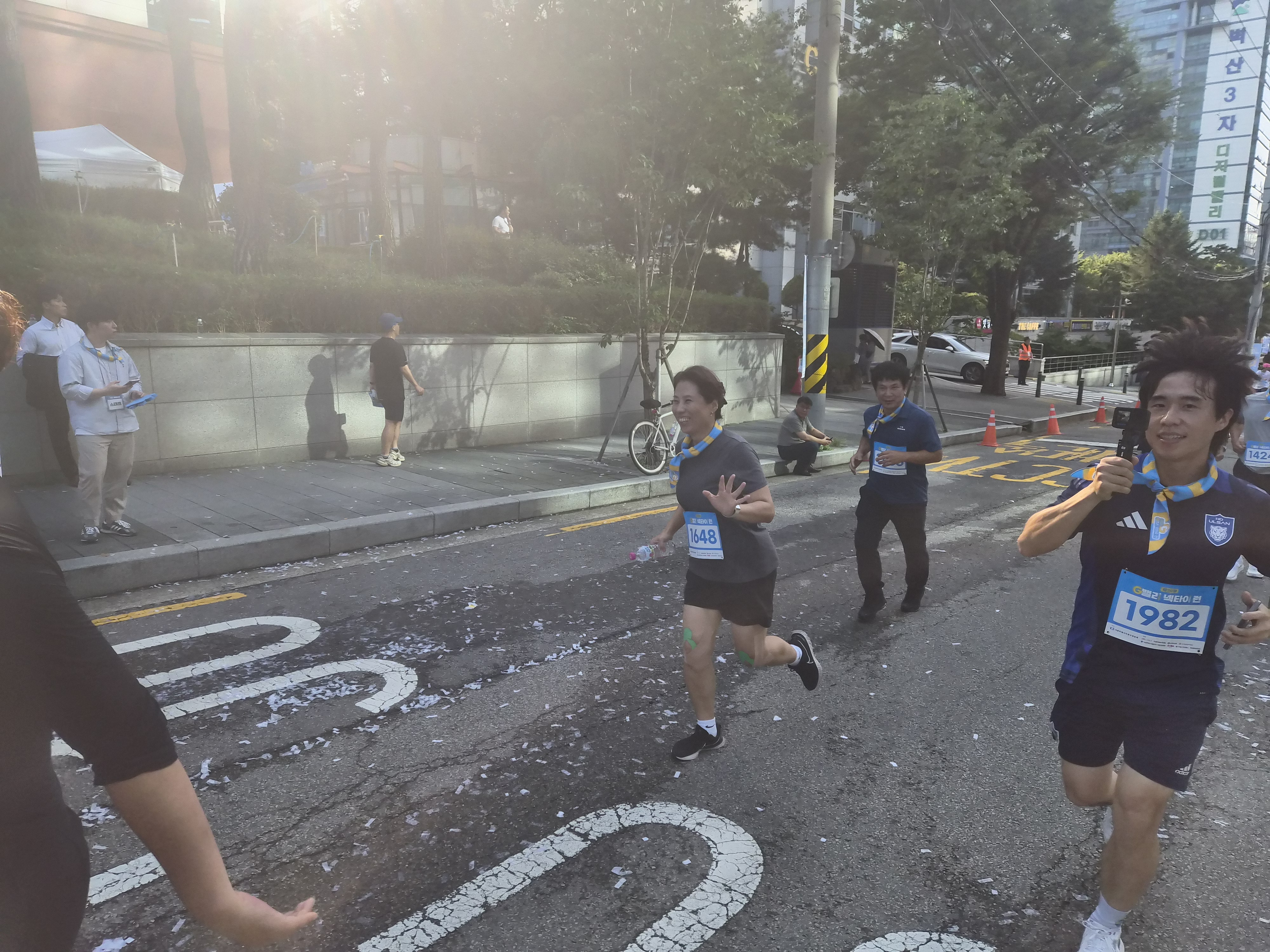 ▶ 완주 후 골인점에 속속 도착하는 직원들
