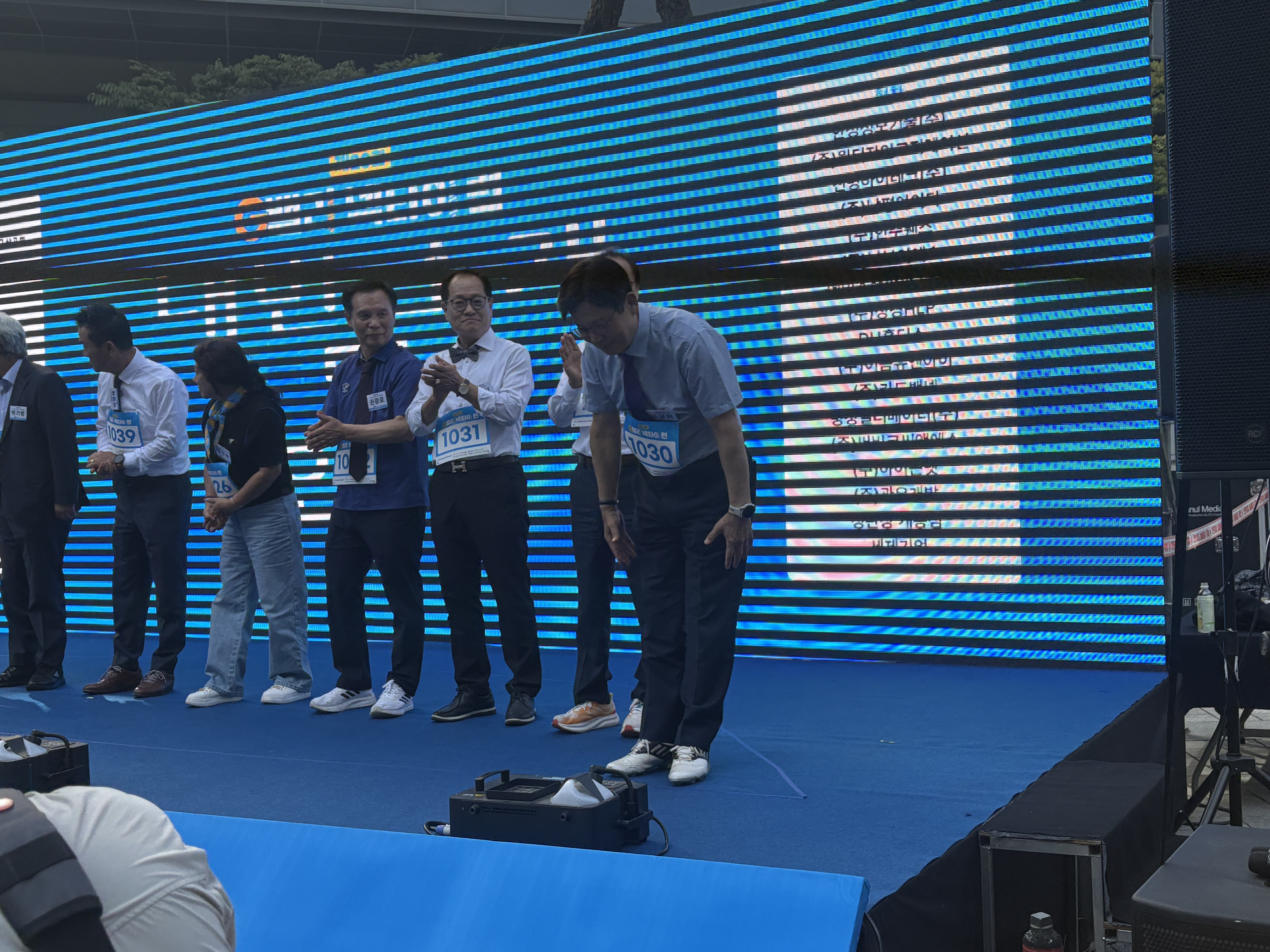 ▶ 대회 시작 직전 화이팅 하는 직원들